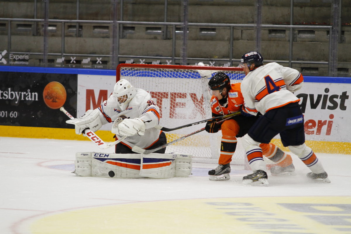 Karlskronas målvakt Arvid Holm var väldigt tät i kassen! Han lät sig inte göra några misstag då ett hårt pressande Växjö stod för en hel del skott i den tredje perioden.
