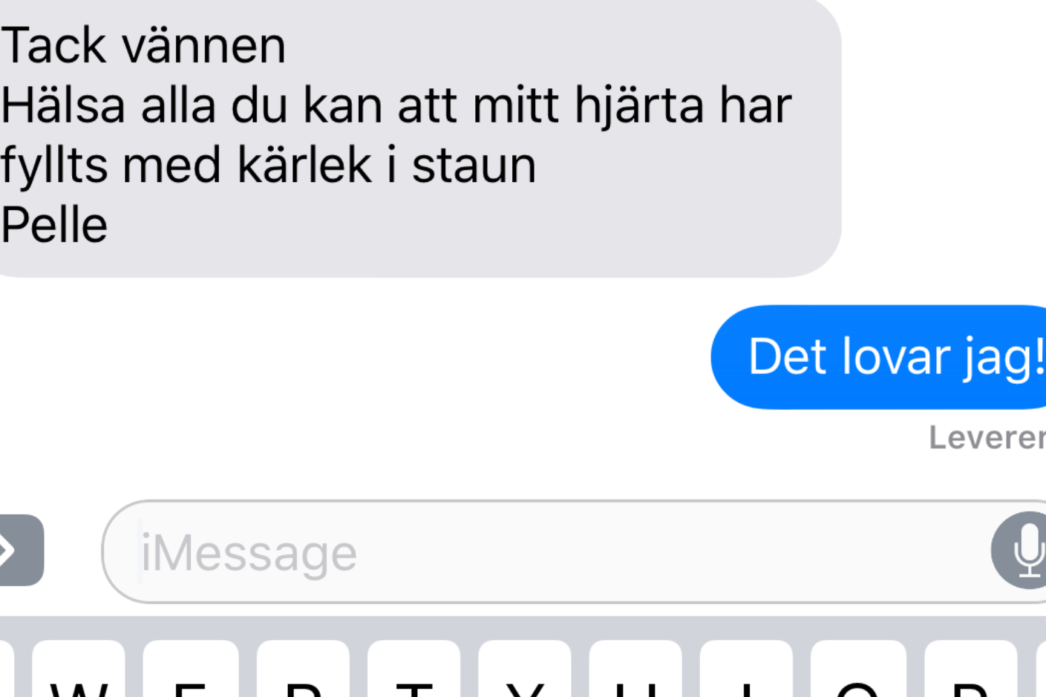 Pelle kan inte tackas nog mycket för sin gärning i klubben. Jag har smsat med Pelle ikväll och i ett av smsen sänder han en hälsning till alla. Se bild i rubriken.