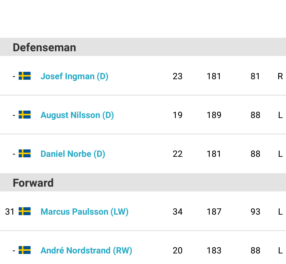 André Nordstrand som är en bekanting. Han spelade senaste säsongen i vårt J-20 Superelit lag där han svarade för 40 poäng på 38 matcher. Tjugåringen var lagkapten och en av de bärande spelarna i laget. Den Huddingefostrade ynglingen är under kraftig utveckling och blir mycket intressant att följa.